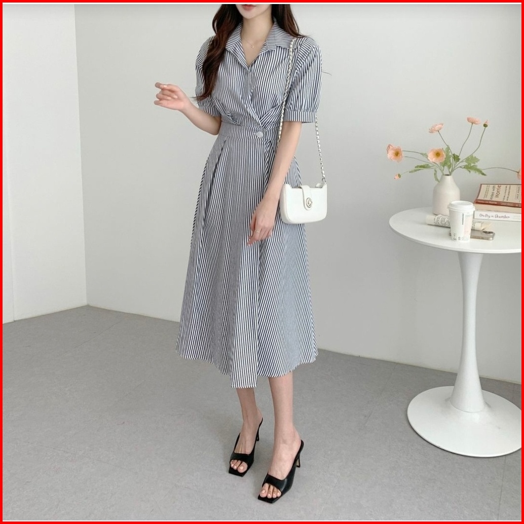 Fwg - Dress Gani Stripe Dress Wanita Baju Dres Wanita Korea Dress Salur Dres Pakaian Wanita