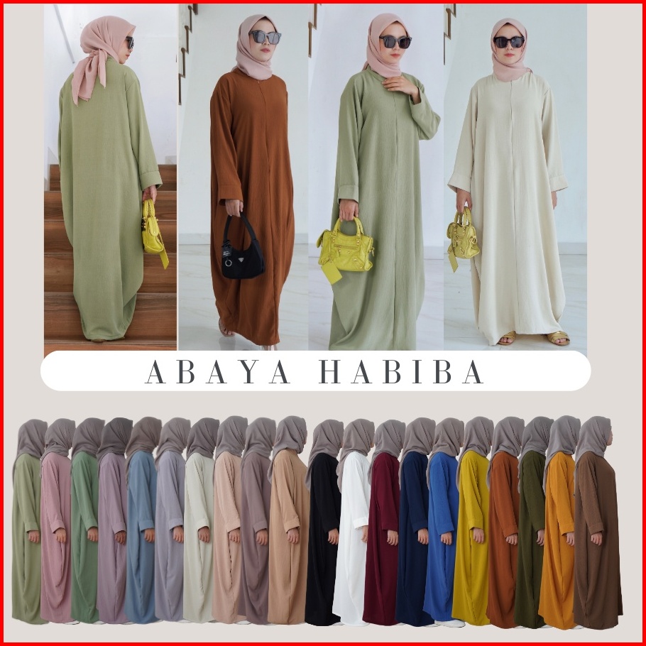 Abaya Habiba Crinkle Gamis Crinkle Polos Abaya Kaftan Basic Turkey Turki