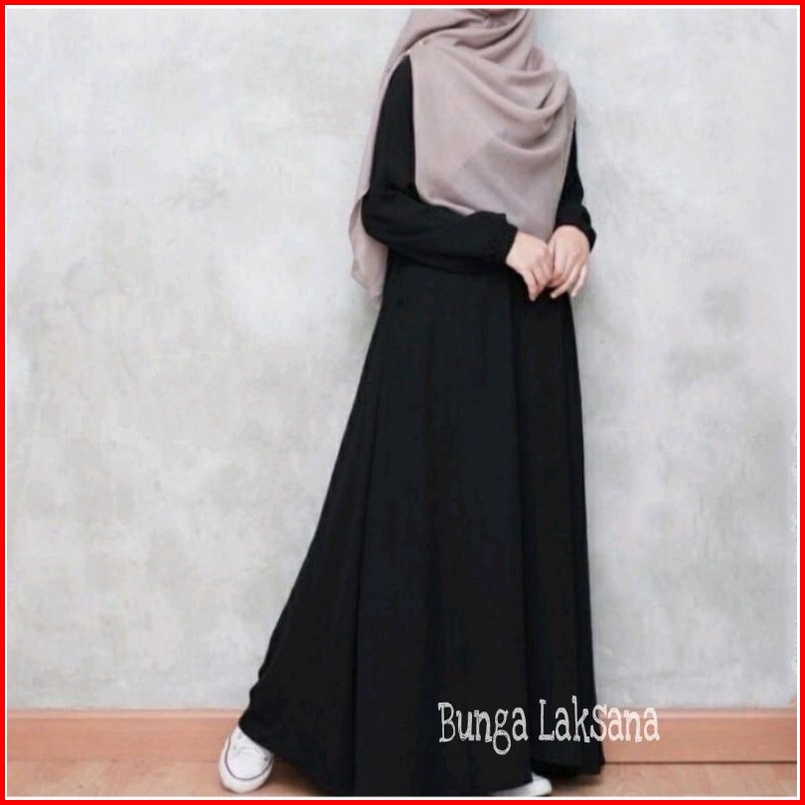 Basic Abaya Hitam Dress Gamis Daily Polos Syar I Wanita Muslim Lengan Panjang Busui