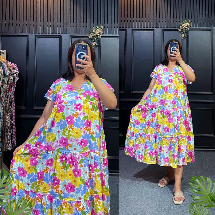 Masayu Daster Jumbo Adem Homedress Rayon Premium Motif Bunga Cantik Nyaman Untuk Tidur Busui & Daily Wear Baju Kerut 3 S