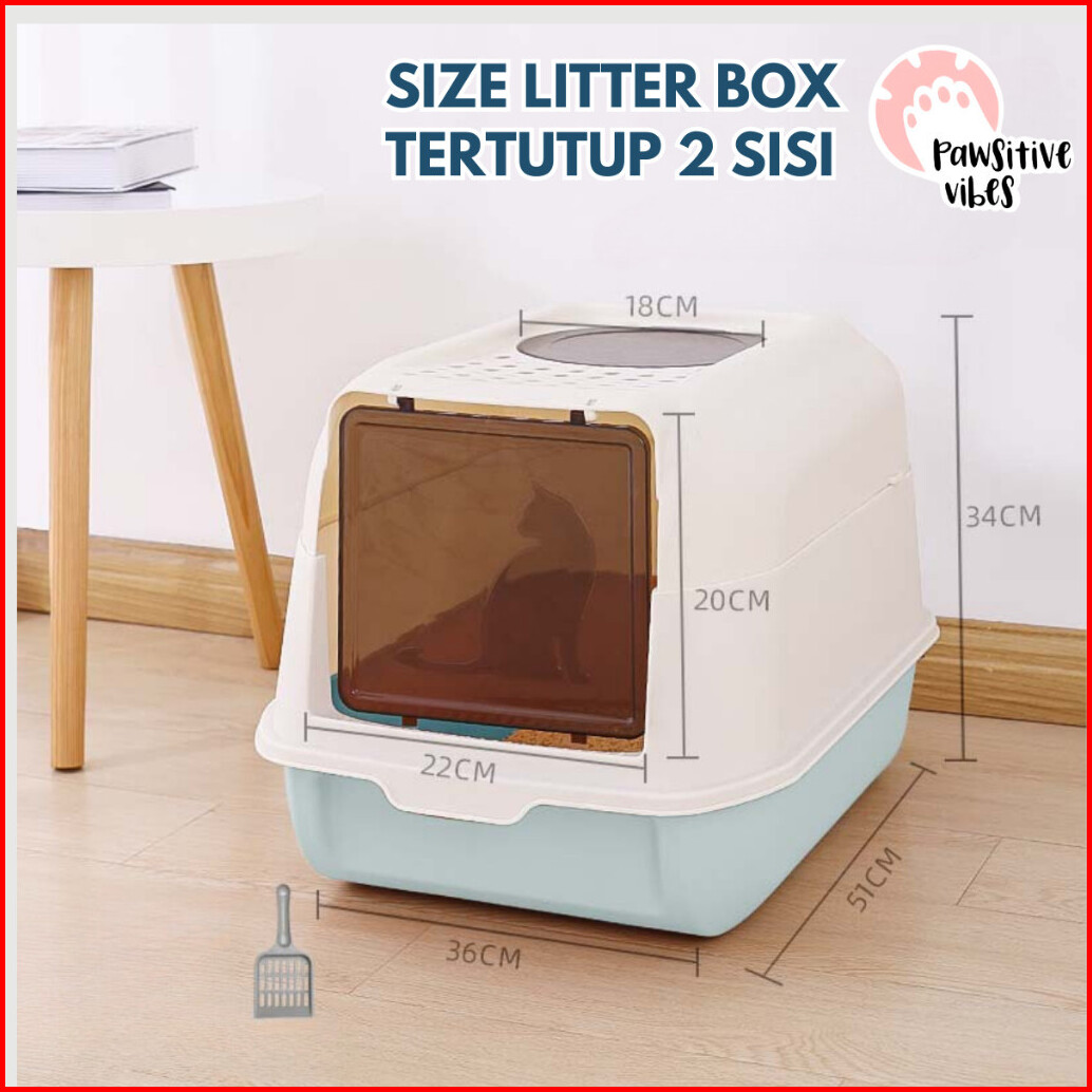 Cat Litter Box Tertutup Dengan 2 Sisi Pintu - Bak Pasir Kucing Free Sekop - Cat Toilet Full Tertutup - Tempat Pup Kucing
