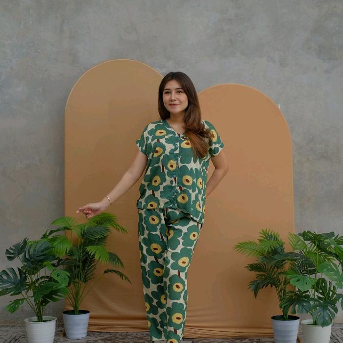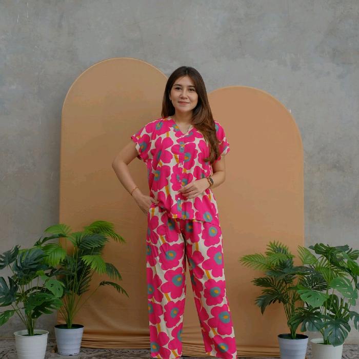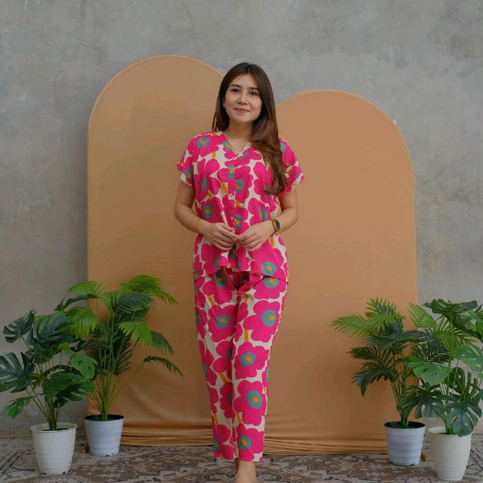 Babydoll V Neck Kancing Panjang | Piyama Kekinian | Piyama Wanita - Kcvn 1