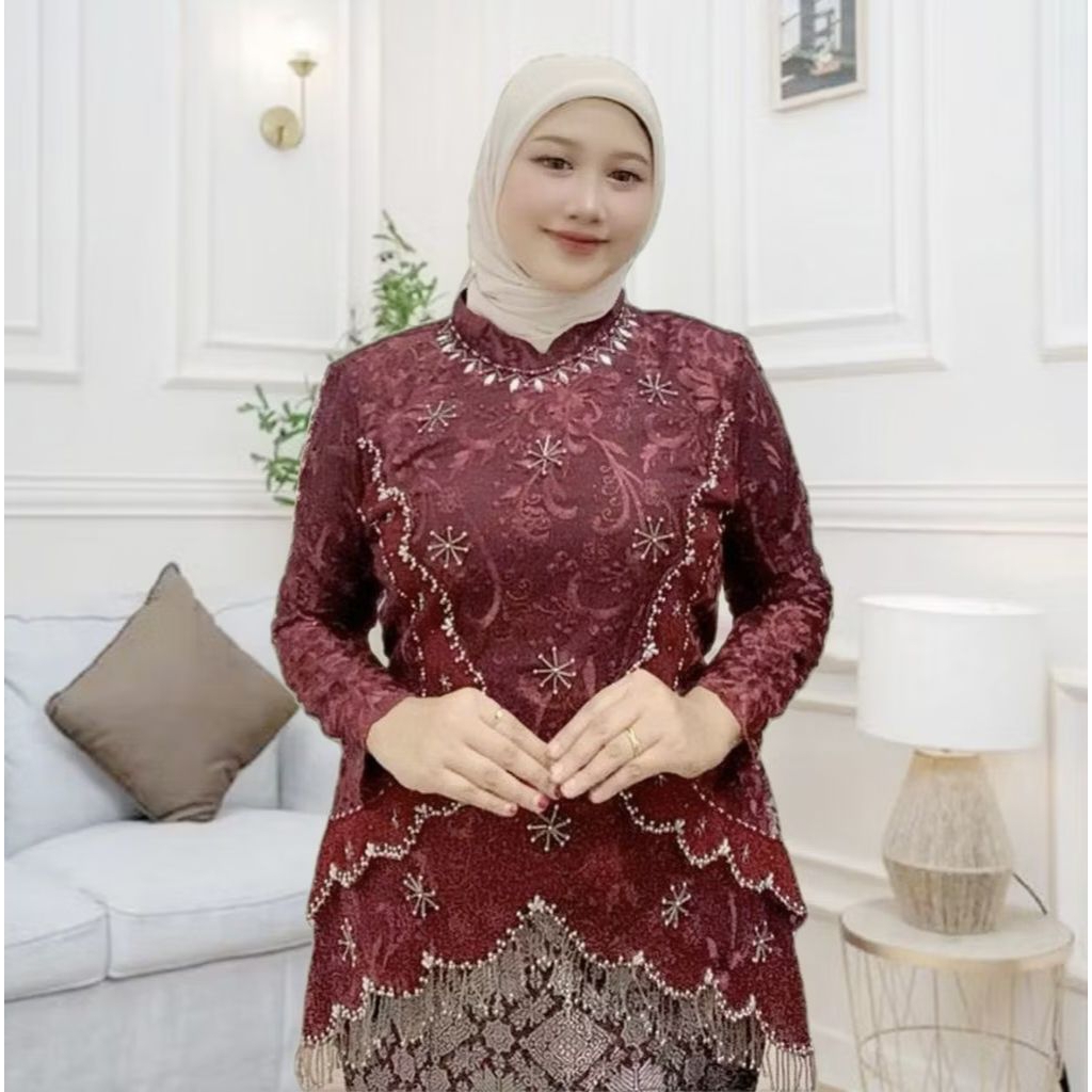 Kebaya Rumbai Payet Mewah//Stelan Kebaya Songket//Kebaya Wisuda