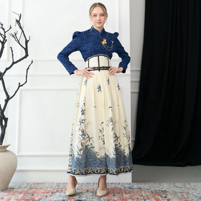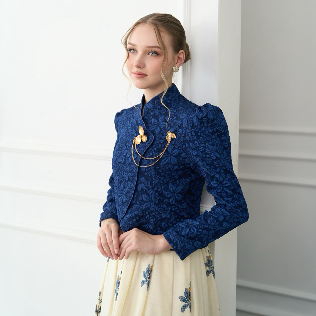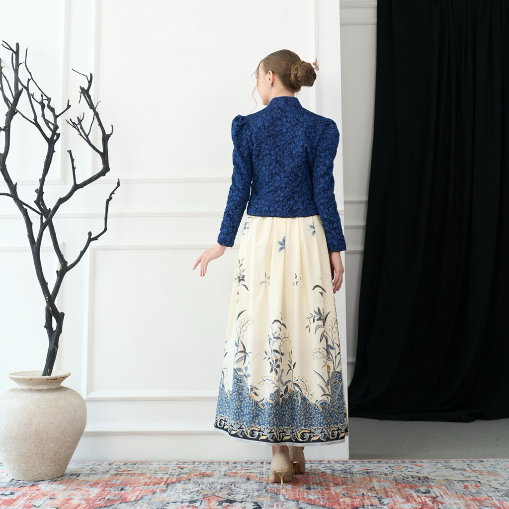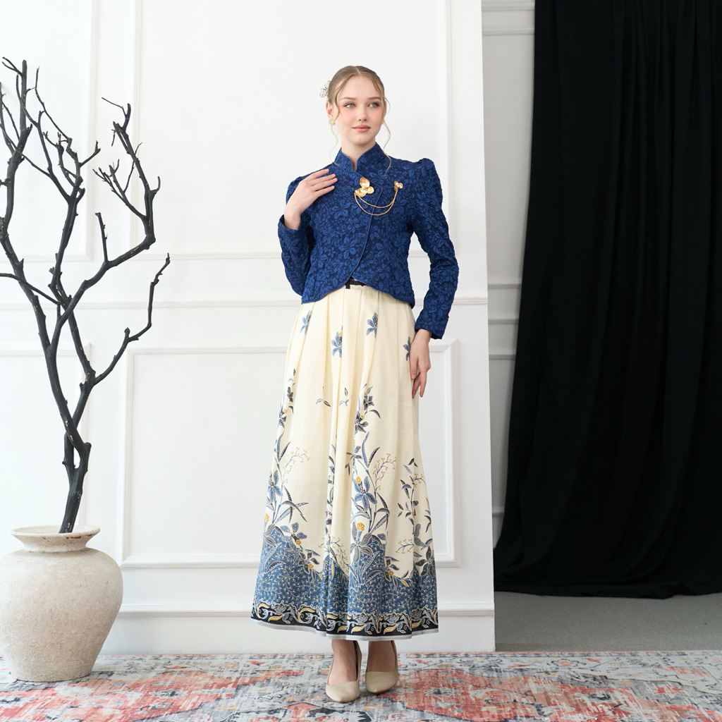 Kebaya Janggan Croptop Biru / Rok Janggan Angking Putih Navy / Kebaya Wisuda Moden