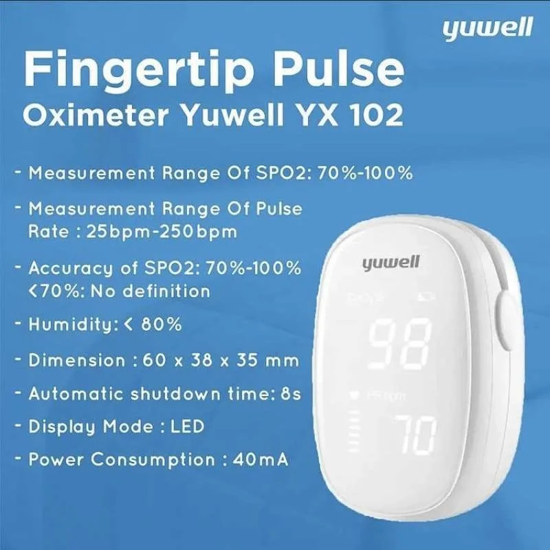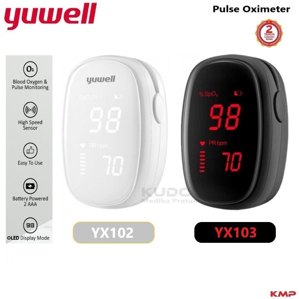 Yuwell YX102 - Pulse Oximeter Oxymeter - Alat Ukur Saturasi Oksigen YX-102 Putih - Yuwell YX103 YX-103 Hitam