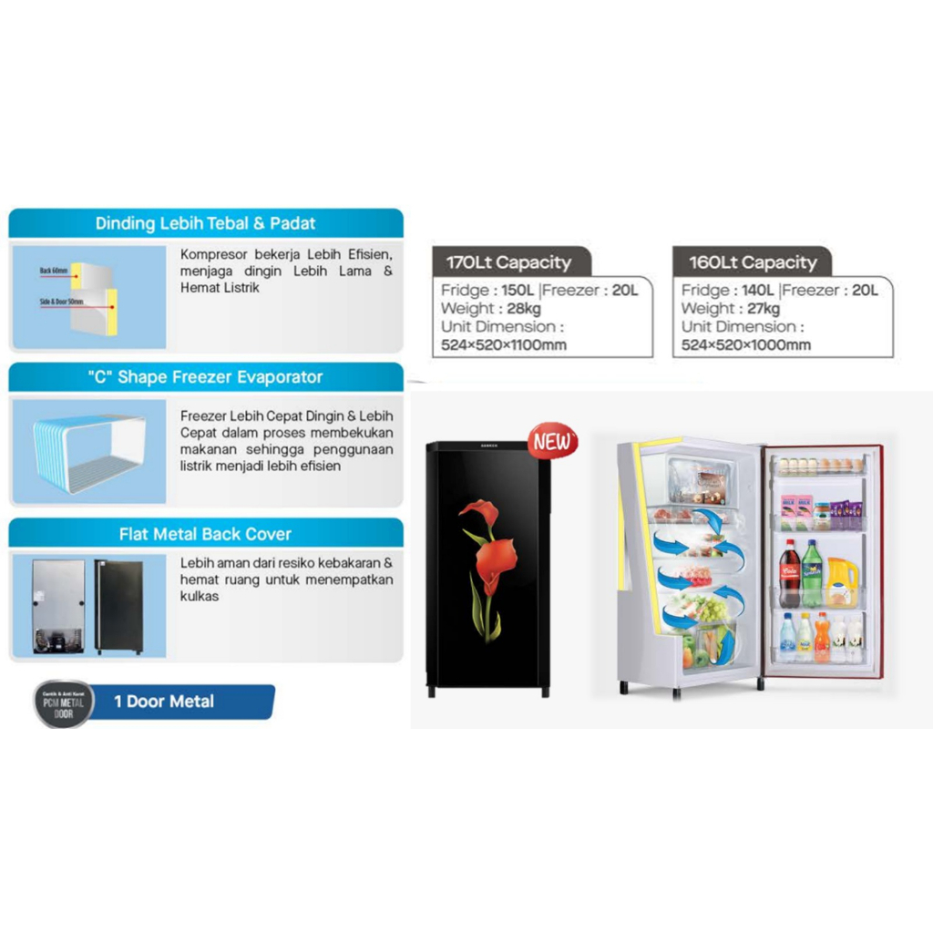 Sanken Kulkas 1 Pintu SK-V167PF-RD Refrigerator 160 L