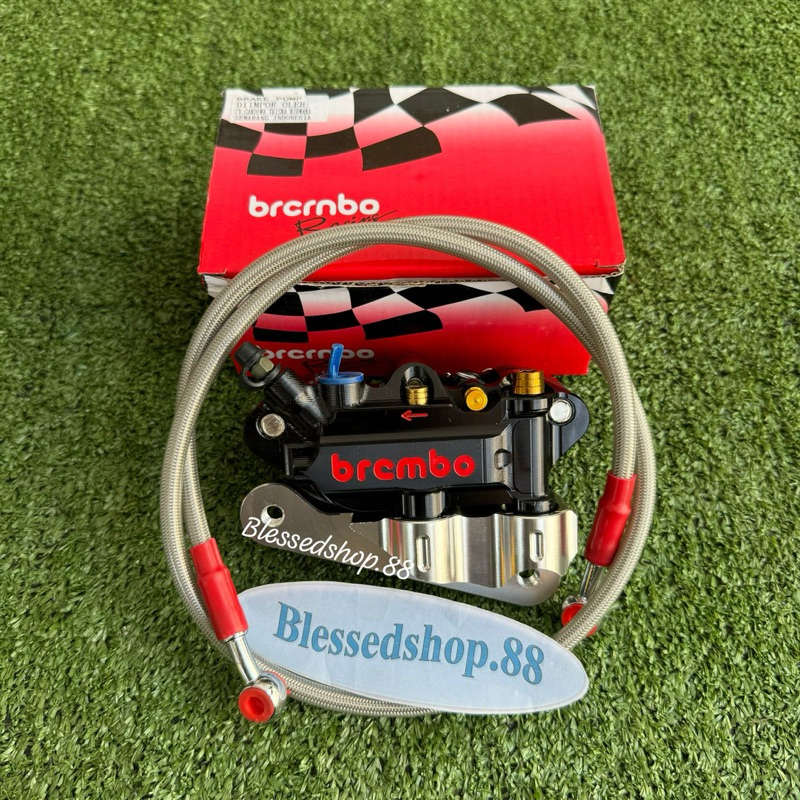 PAKET KALIPER MONOBLOK KIRI 4 PISTON + 2 BAUT KRUCUT + SELANG REM 95CM + BREKET 220MM KALIPER KIRI BEAT VARIO SCOOPY GEN