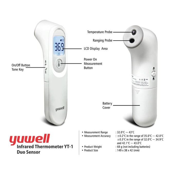 YUWELL - Thermometer Infrared YT 1 | Termometer Non Kontak Thermo Gun