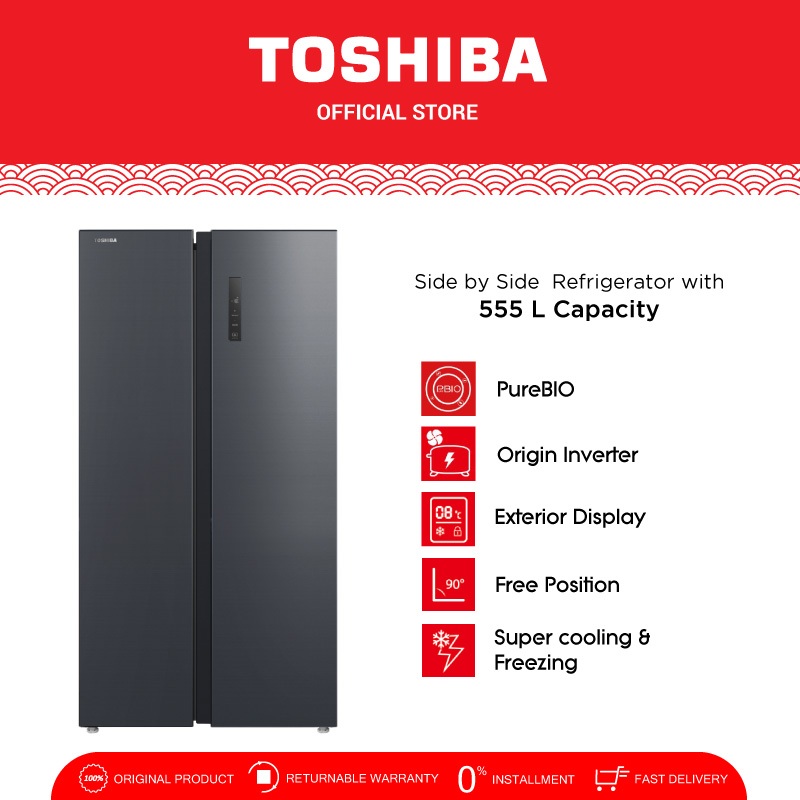 TOSHIBA Kulkas SIDE BY SIDE GR-RS696WE-PMF-06 Kapasitas 555L - Water Dispenser - LED Lighting