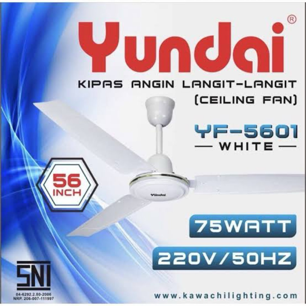 Kipas Plafon Gantung Ceiling Fan Yundai YF 5601 YF 5602 56INCI Warna Putih / Hitam