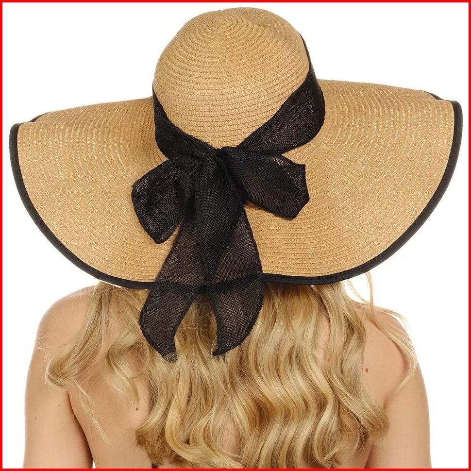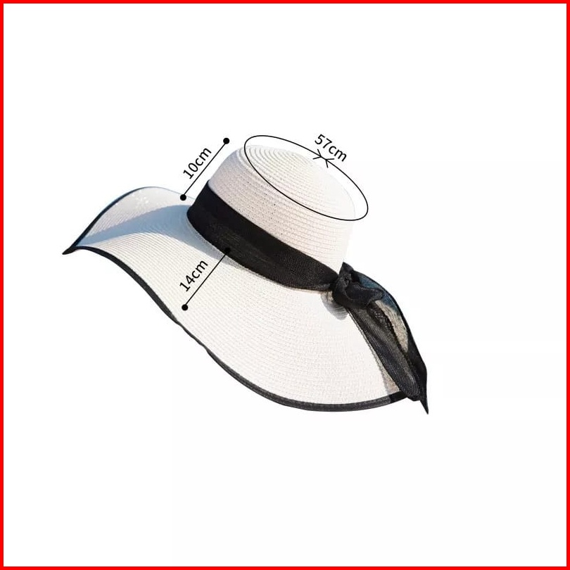 Lf - Topi Pantai Lebar List Hitam Topi Pantai Lebar Pita Simple Dewasa Summer Hat Promo