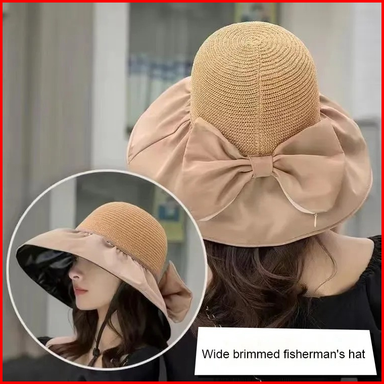 Topi Pantai Sambrero Pita Full Cap Ala Jepang Bisa Dilipat Bahan Kain Dan Jerami Impor