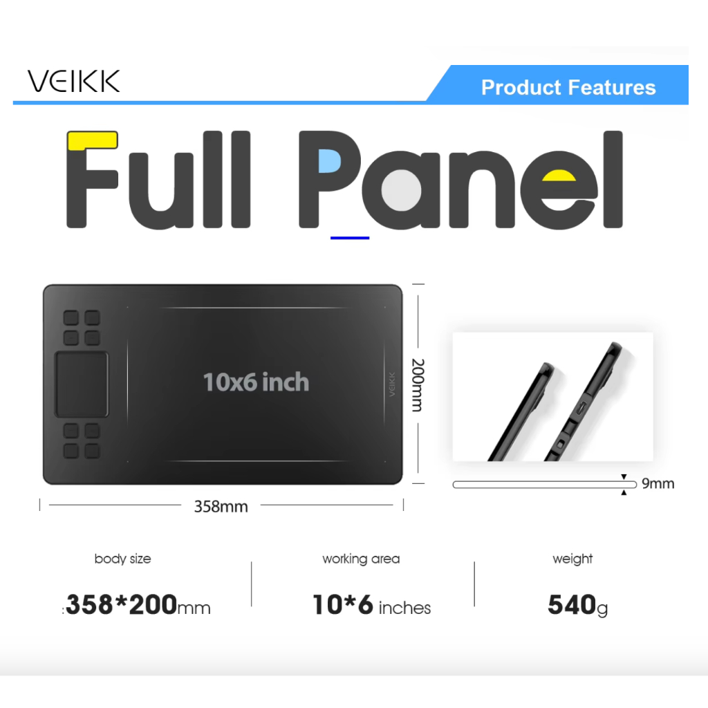 VEIKK A50 Digital Graphic Drawing Pen Tablet Gambar 8192 Pressure 10x6 inch