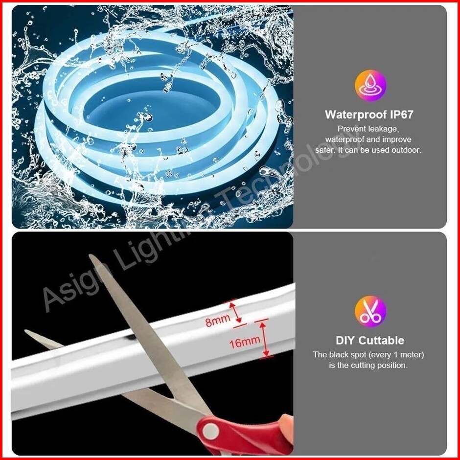 Promo Paket Lampu Dekor Neon Flexible Panjang 6m 7m 8m 9m 10m Led Selang Fleksibel 220v Warna Neon Box Outdoor Ip65 Stri