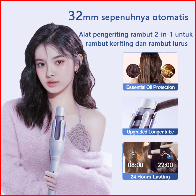 Pribinruis 2in1 Catokan Curly Otomatis Ceramics 32mm Catokan Keriting Rambut Otomatis Lon Negatif Catokan Rambut Curly R