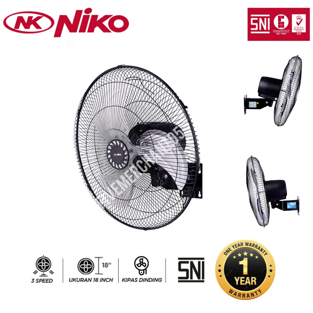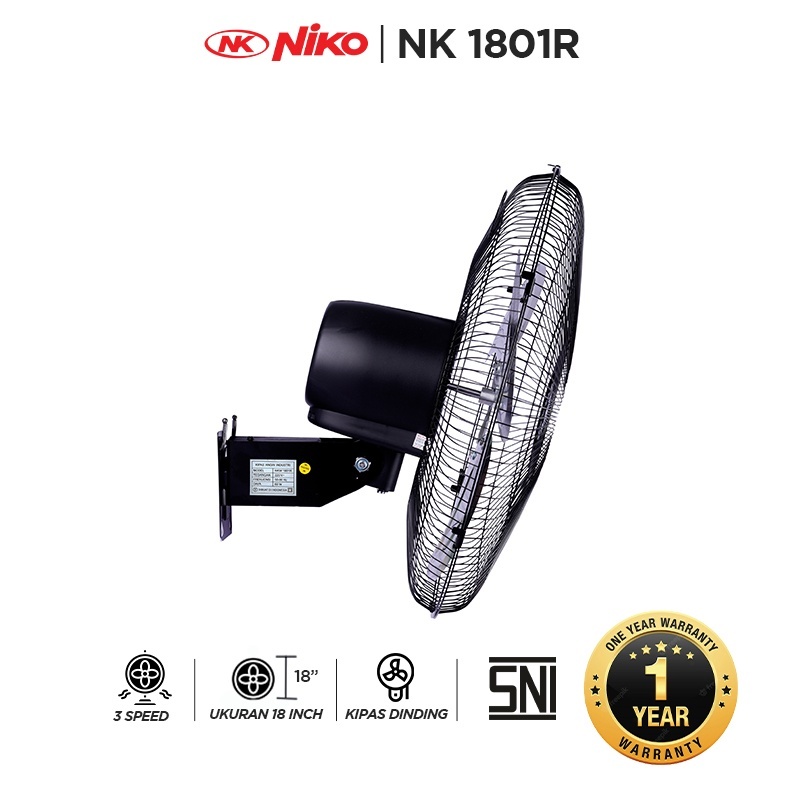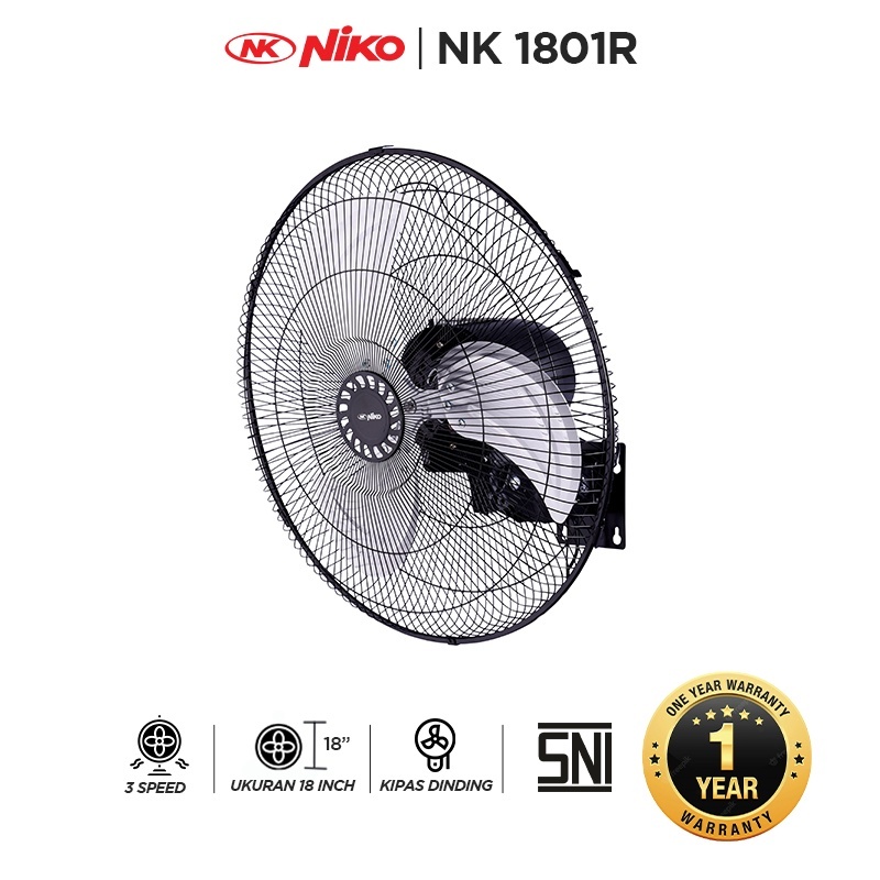 Kipas Angin Niko NK 1801 Wall Fan Industrial Tembok Dinding Kipas Besi Murah Garansi SNI