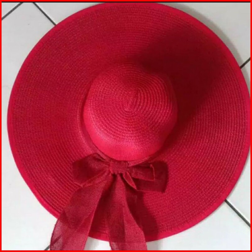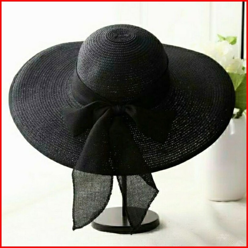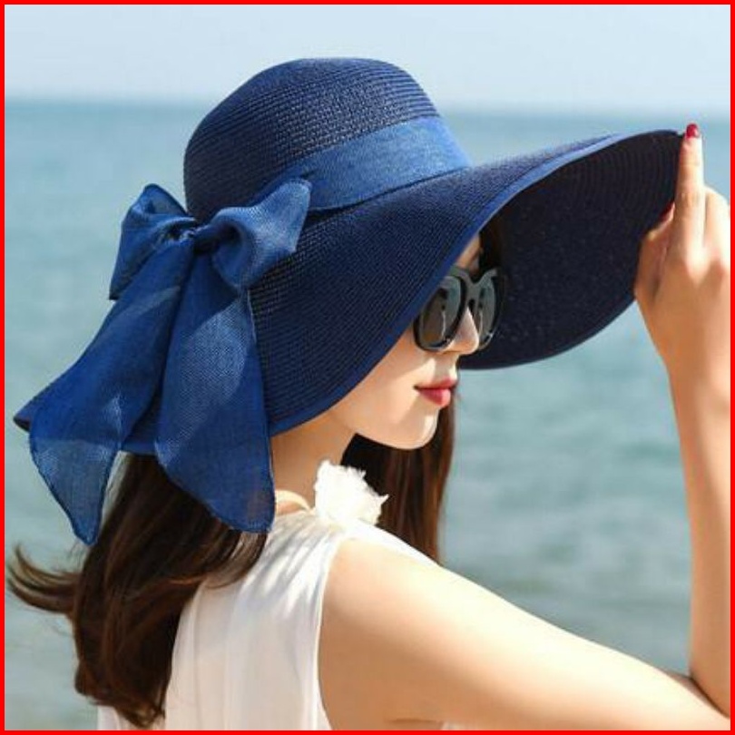 Topi Pantai Lipat Lebar Paper Pita Tebal Wanita Korea Import Straw Hat