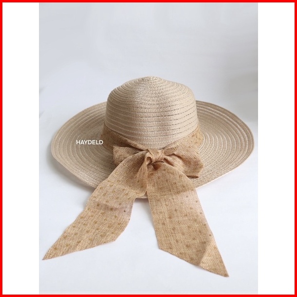 Haydeld - Emily Wide Hat Topi Pantai Dengan Pita Topi Rajut Topi Jaring Pantai