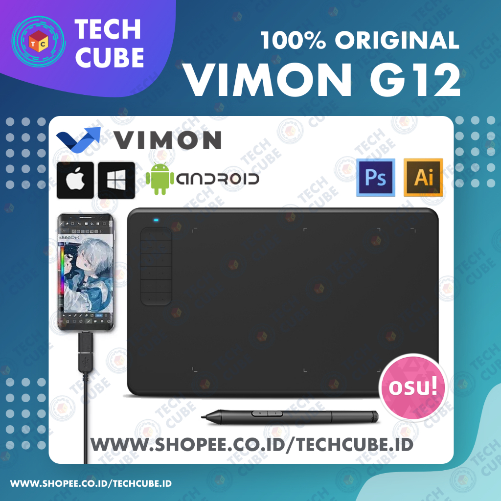 VIMON G12 Digital Graphic Drawing Pen Tablet Stylus Art Design Gambar Writing Pad Tab OSU Alt H640P H430P