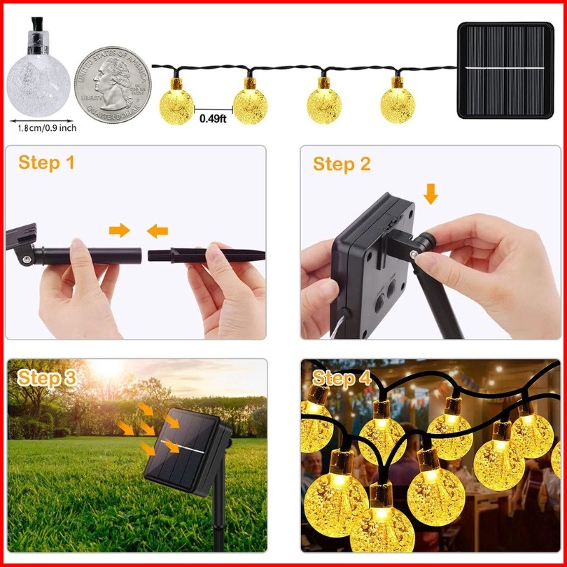 5 12m Led Lampu Liburan Kristal String Lights Solar Lamp Lampu String Surya Gelembung Lampu Led Tempat Baterai Lampu Str