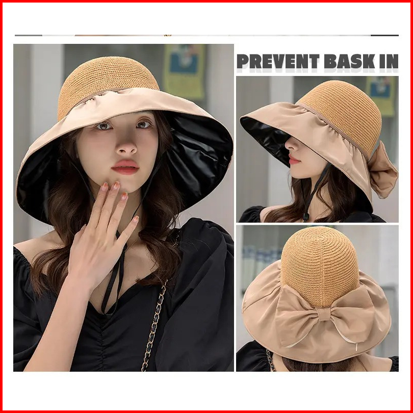 Topi Pantai Wanita Bisa Dilipat Dan Ada Kantong Topi Praktis Murah