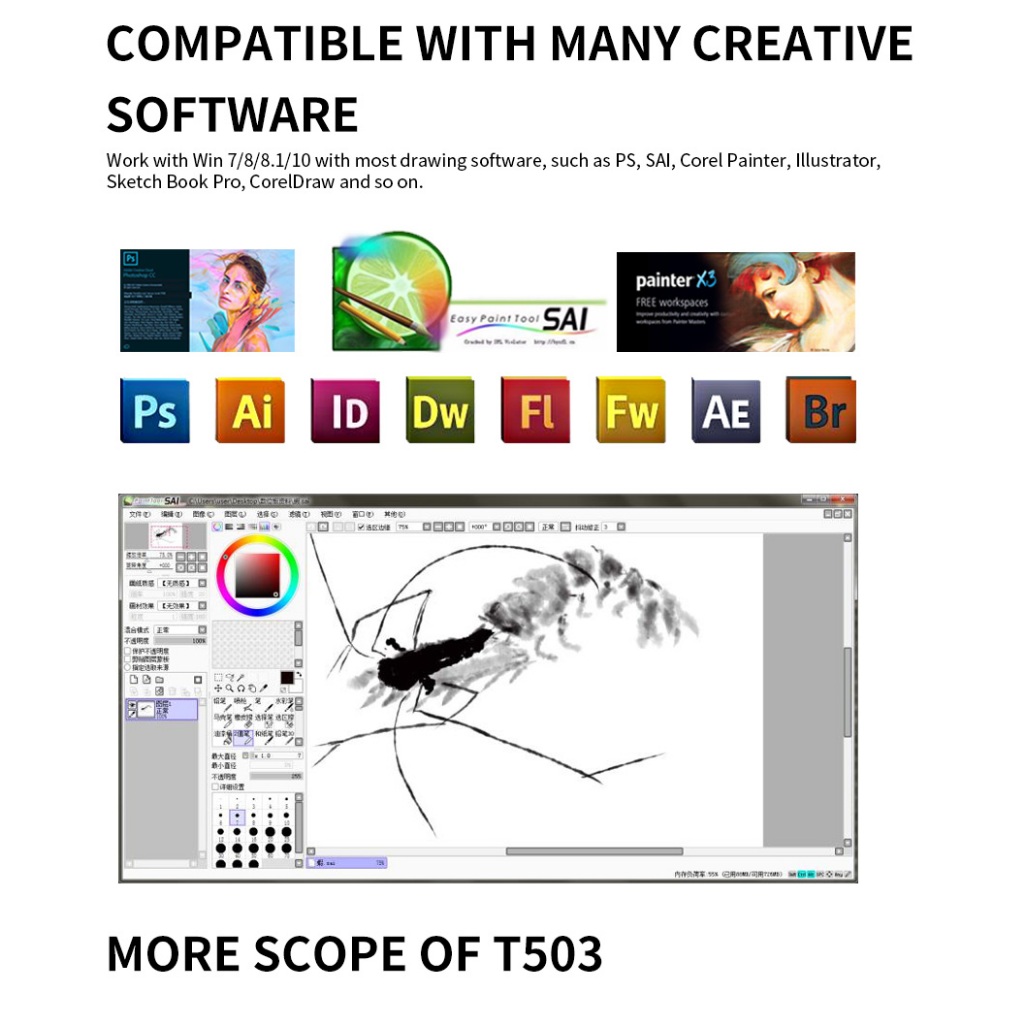 VIMON T503 Digital Graphic Drawing Pen Tablet Stylus Art Design Gambar Writing Pad Tab OSU Alt H640P H430P 10moons T503