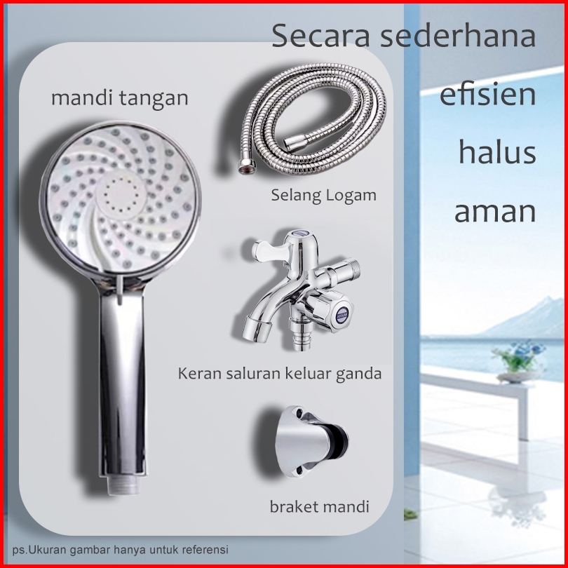 Shower Mandi Simple Set 3 Pcs 1040-shower Head Set Hand Shower Braket Shower System Selang 150cm Paket Hemat