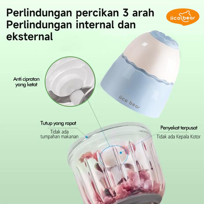 Iico Bear Food Chopper Bayi Mesin Penghalus Makanan MPASI dan Buah Portabel untuk Perjalanan & Rumah