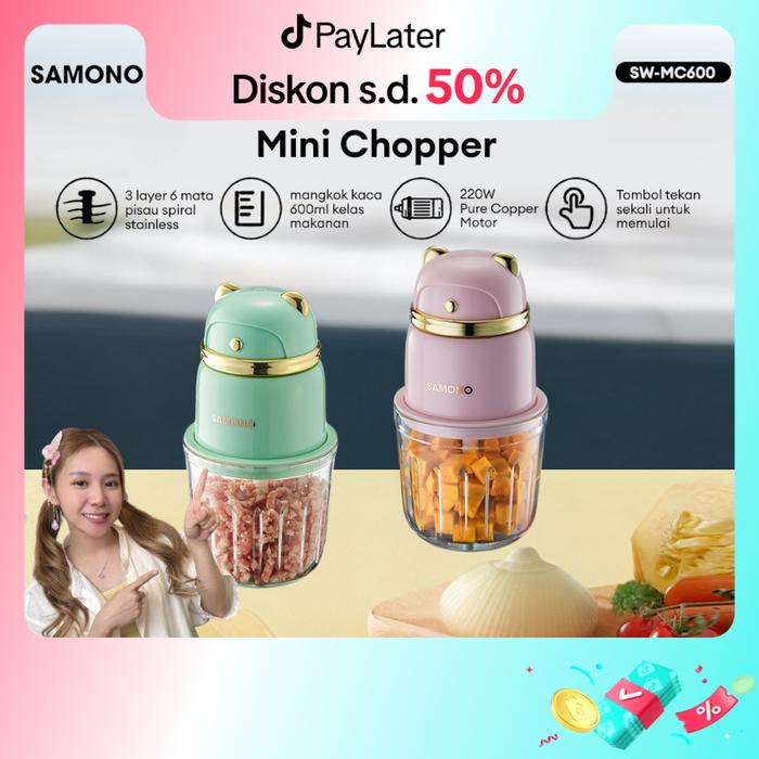 HANYA DI CELYHOMESamono Food Processor Mesin Penghalus Daging dan Sayuran 600 ml [SW-MC600}