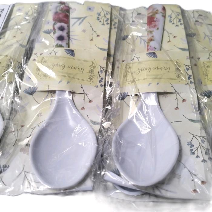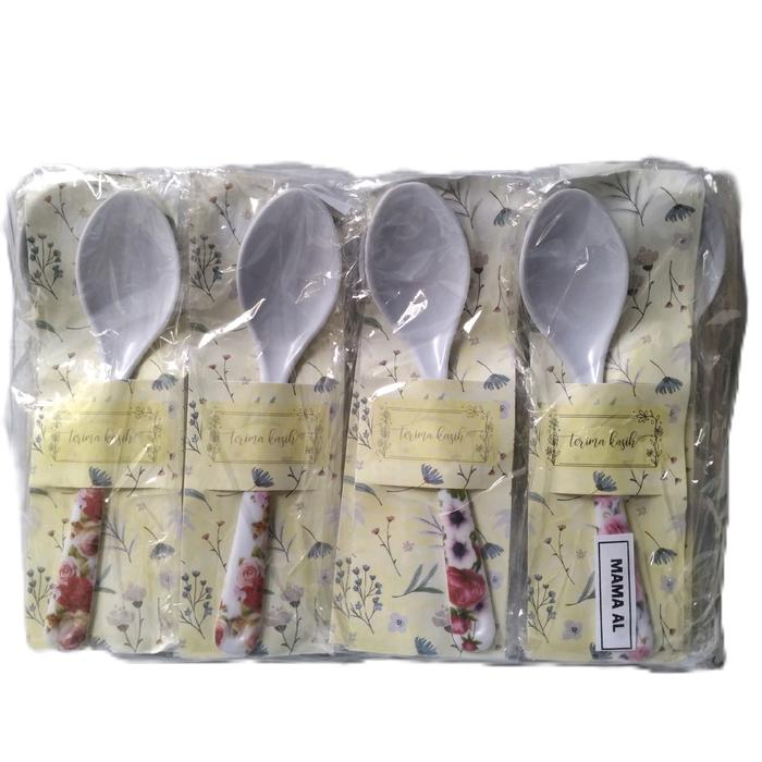 Souvenir Pernikahan isi 50 pcs Sendok Makan Melamin Putih Kemas Alas cantik - - -