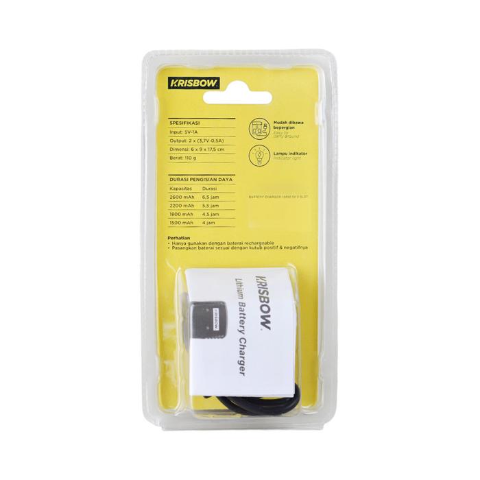 AZKO Krisbow Charger Baterai 2 Slot 18650 5V Casan Batre Isi Ulang Peralatan Elektronik Alat Pengisi Ulang Daya Battery