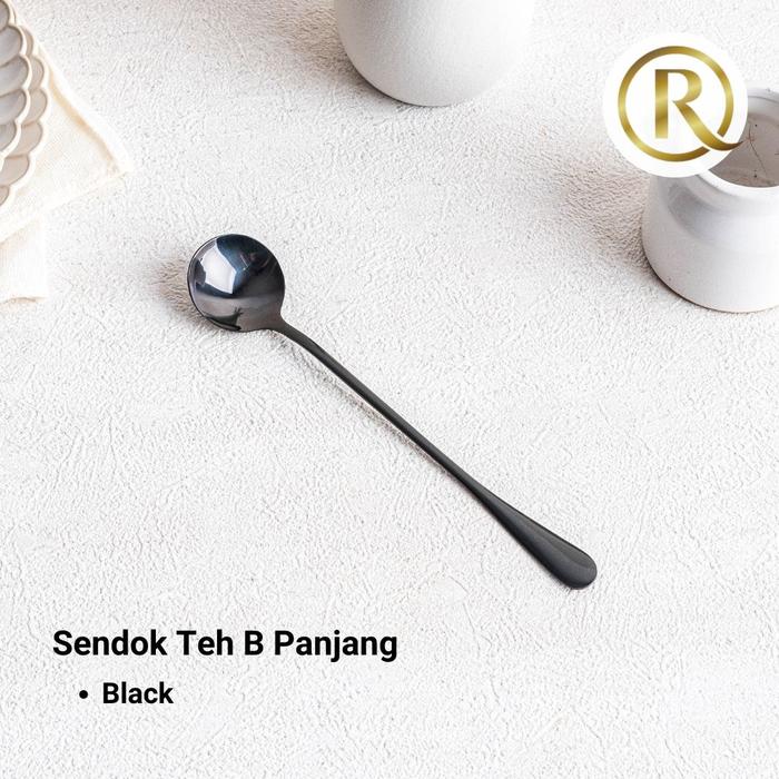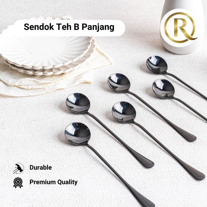 Paket Isi 6pcs Sendok Teh B Gagang Panjang 18.4cm Stainless Steel - Black