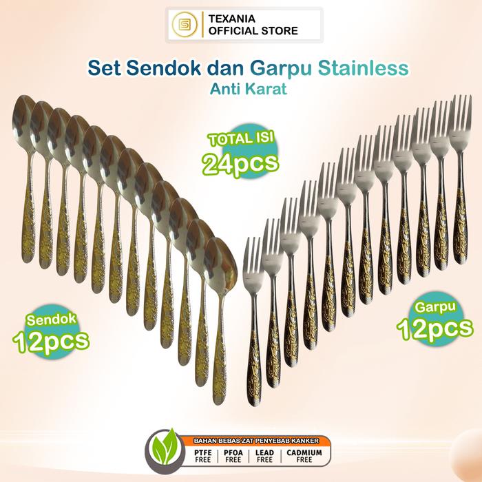 [11.11 SALE] TEXANIA Sendok SilverStainless Steel 12pcs Garpu Silver Stainless Steel 12pcs Alat Makan Kitchenware