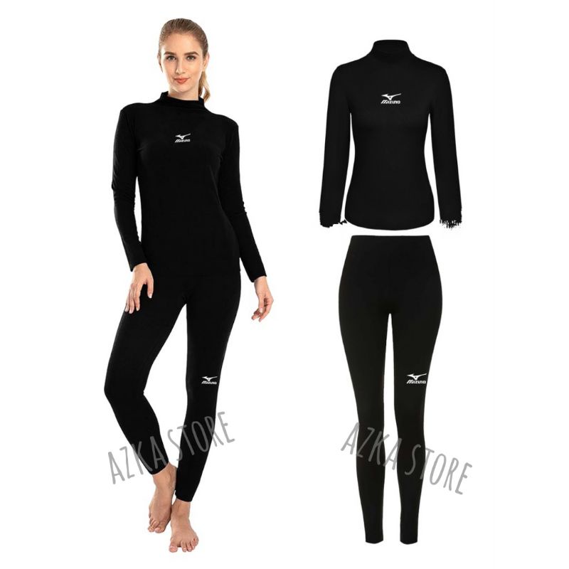 Stelan Pakaian Olahraga Wanita Dapat Manset Baselayer dan Leging Panjang