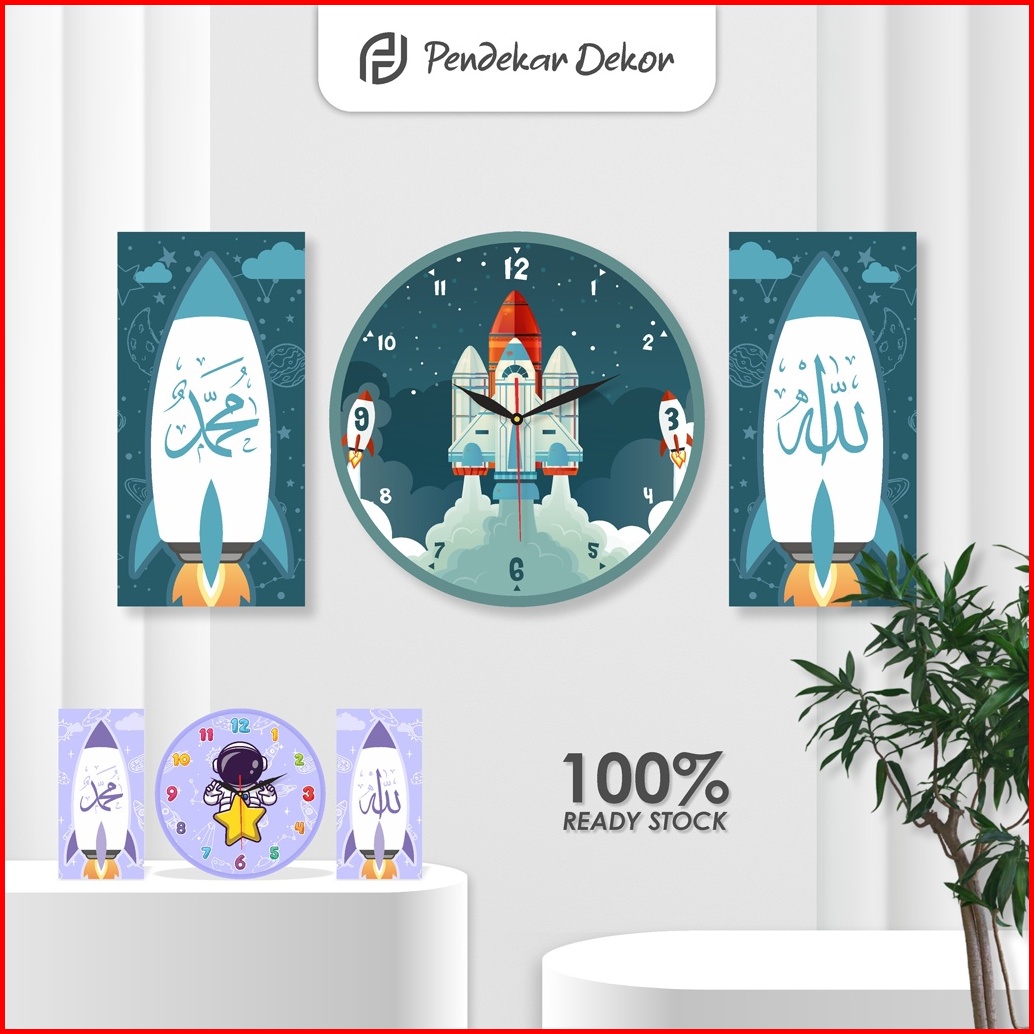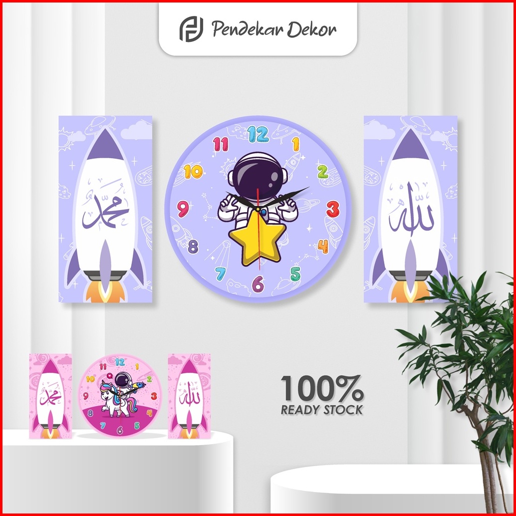 Jam Dinding Kaligrafi Unik 1 Set Astronot Lucu