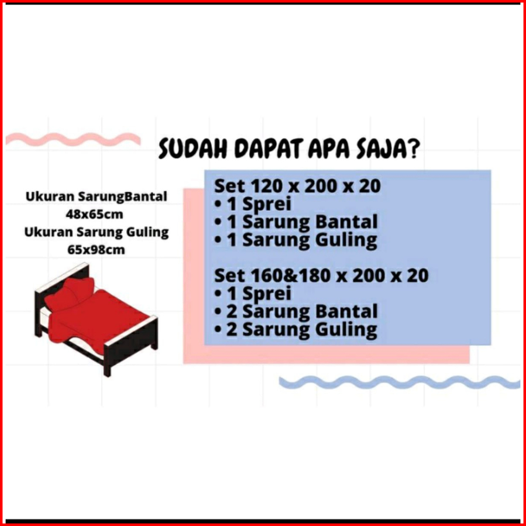 90*200, 120*200, 140*200, 160*200, 180*200, 200*200, SPREI SAJA ACAK 120