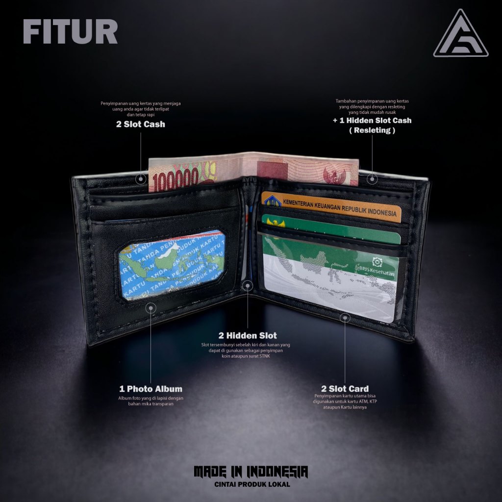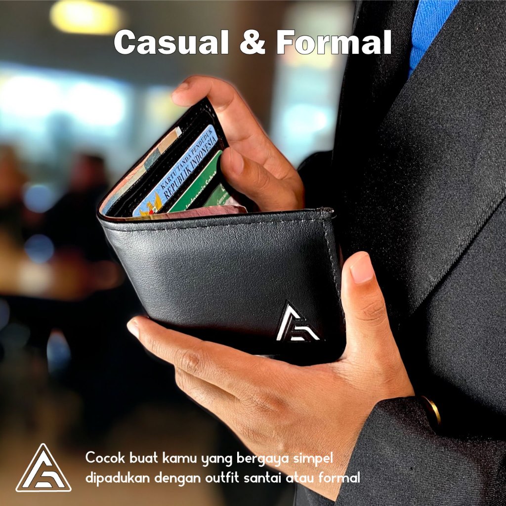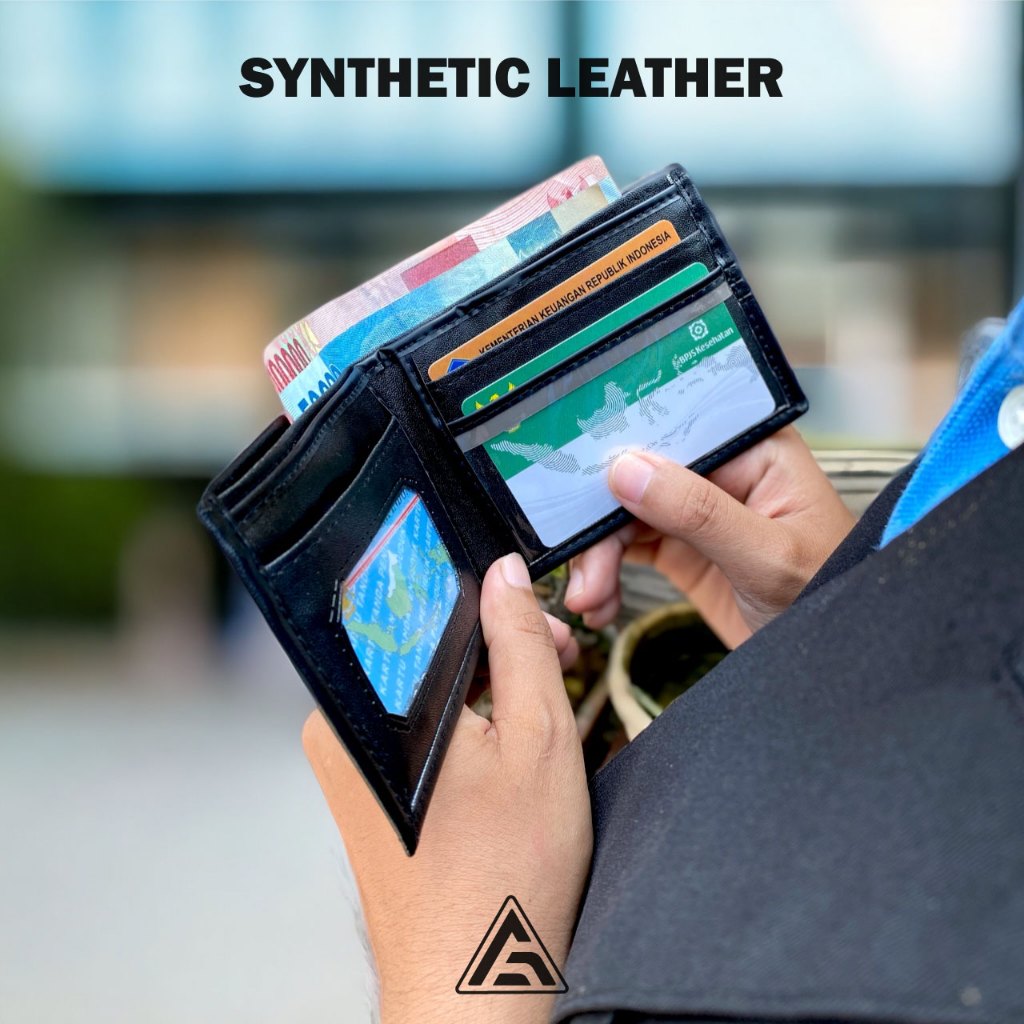DOMPET PRIA Aflah - Dompet Pria Hitam Kulit Sintetis Horizontal Ringan Free Box D01