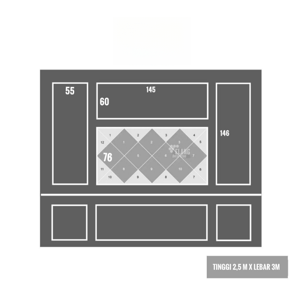 PAKET LENGKAP TINGGI DINDING 2.5 METER X LEBAR 3 METER MOULDING + KACA CERMIN