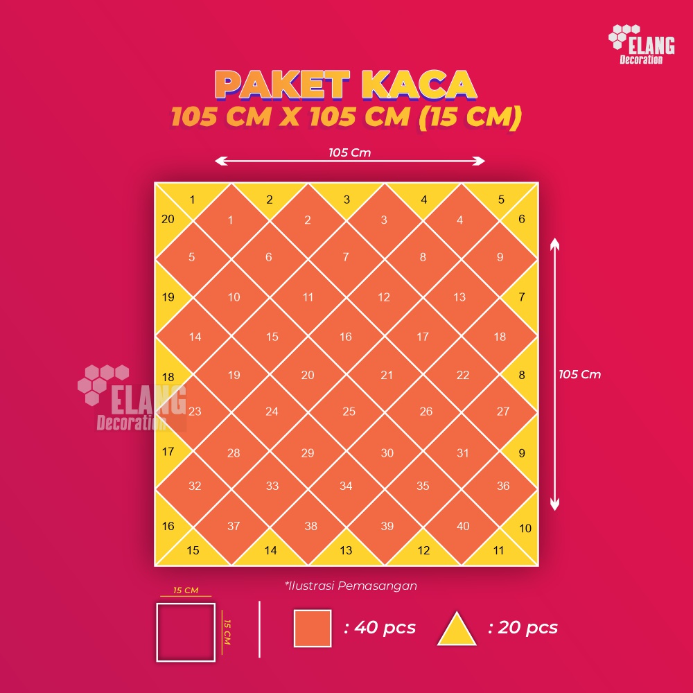 Satu Set Kaca Cermin 105CM X 105CM / Paket Hemat Satu Set Kaca Cermin Rectangular ASLI KACA 100%