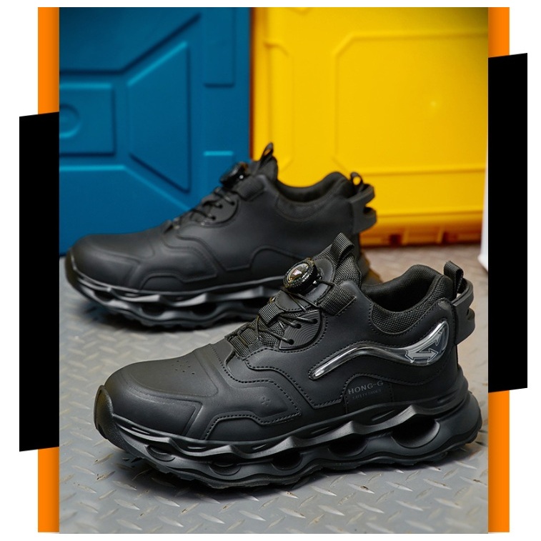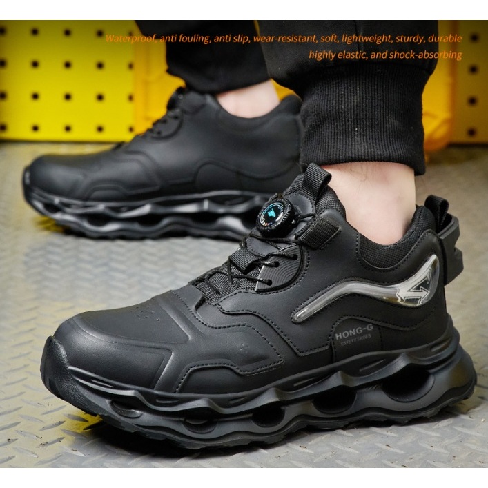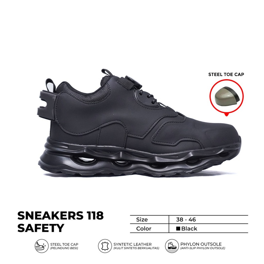 Sepatu Safety shoes sport ujung besi casual hitam pria dan wanita Anti Air Anti Smashing Stab black