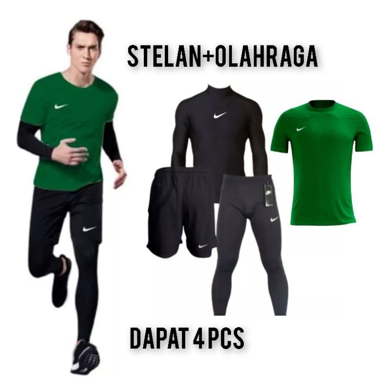 4 IN 1 - STELAN OLAHRAGA PRIA BAJU JERSEY CELANA PENDEK LEGGING PANJANG BAJU MANSET LENGAN PANJANG SPORT FUTSAL LARI GYM