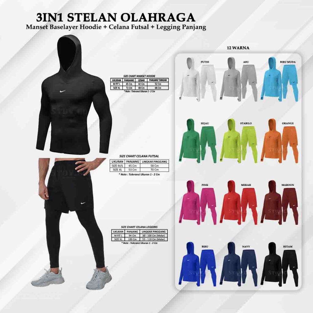 3IN1 STELAN PAKAIAN OLAHRAGA MANSET PRIA HOODIE BASELAYER PANJANG LEGGING PANJANG DAN CELANA PENDEK