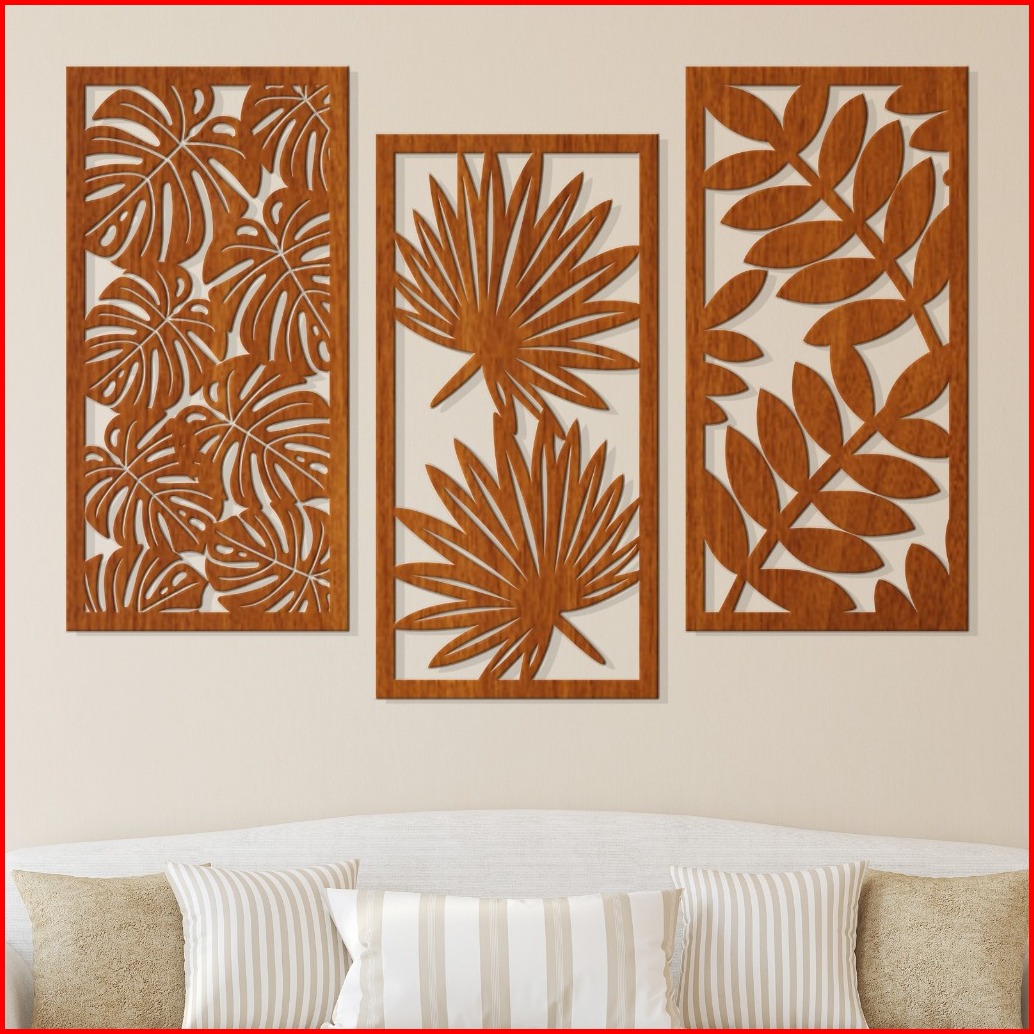 Set Hiasan Dinding Ruang Tamu Dekorasi Motif Leaves Monstera03 Pajangan Kamar Tidur