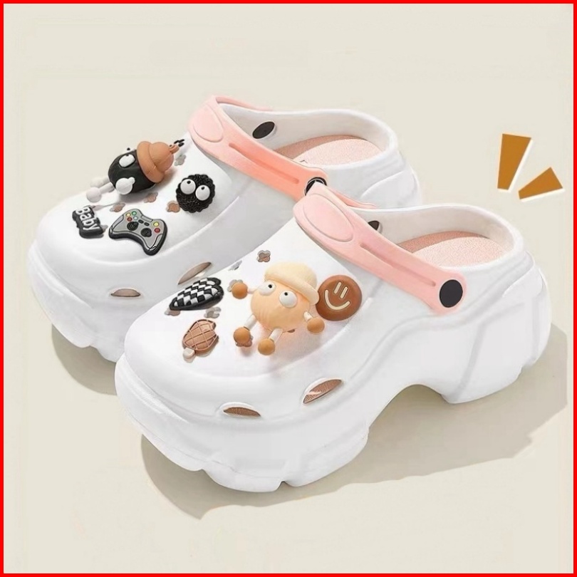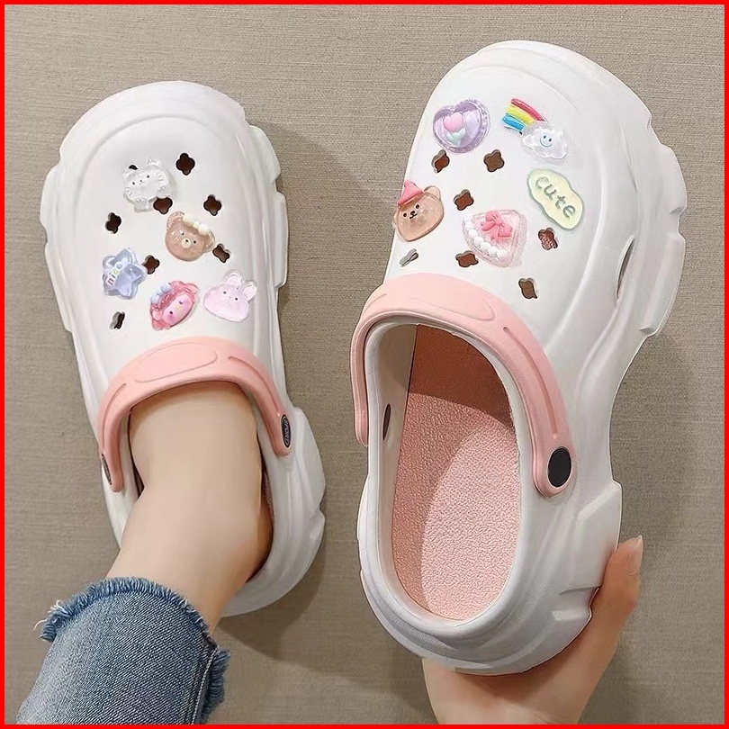 Sandal Wanita Terbaru 2024 Dengan Desain Lubang-lubang Aksesori Dekoratif Jelly Eva Yang Lucu