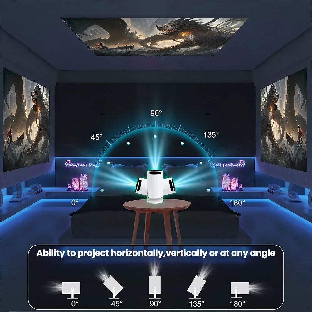 BUMIR RY008 Proyektor Portabel 1280720P HD 100-120 Lumen ANSI, Mendukung WiFi/HDMI/USB, Proyeksi Ukuran 40-100 Inci