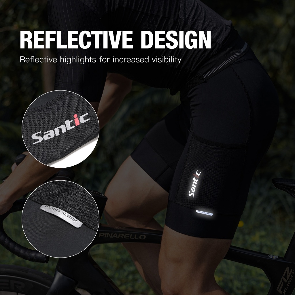 Celana Pendek Bersepeda Pria Santic Padding 4D Bernapas Cepat Kering dengan Saku Reflektif KM1C05136