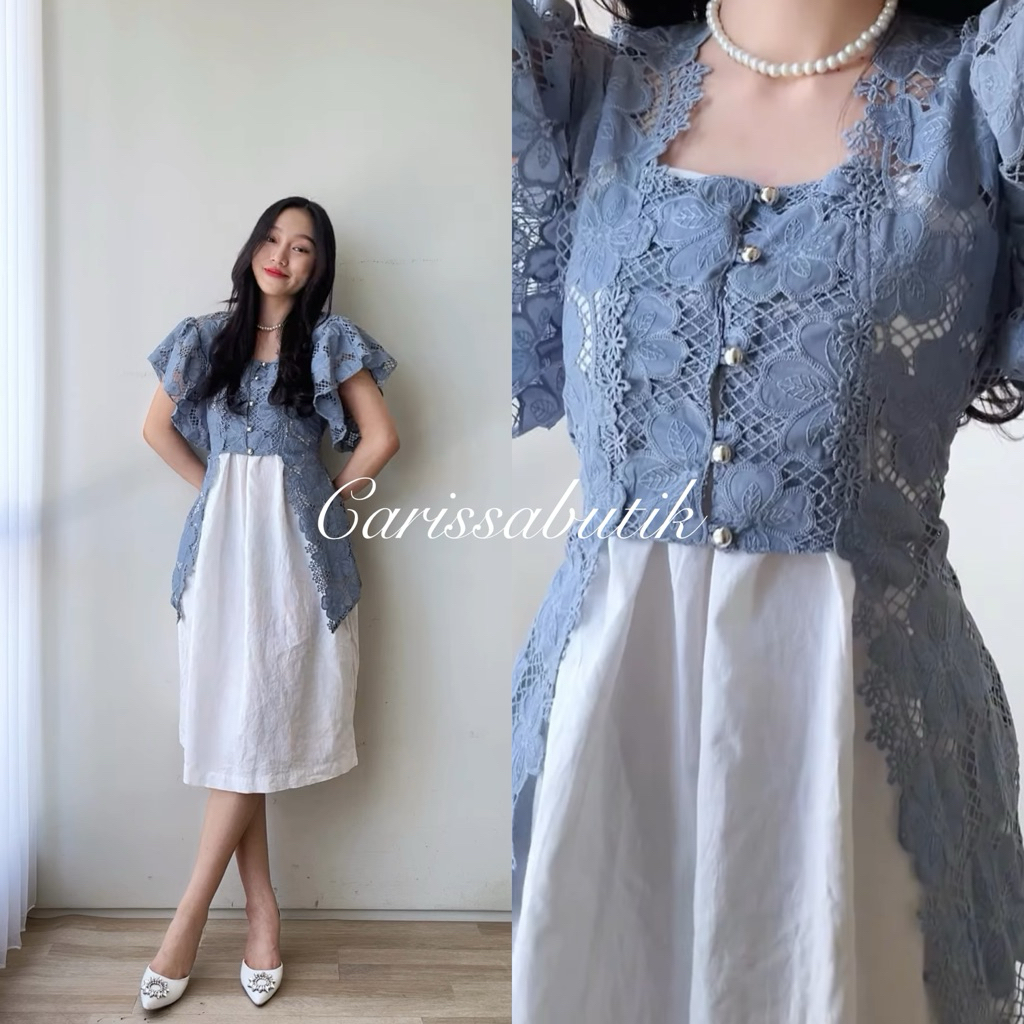 Carissa - KAHIYANG T0P - Kebaya Brokat Prada - Bordir Bunga - Pakaian Wanita - Ready Stock