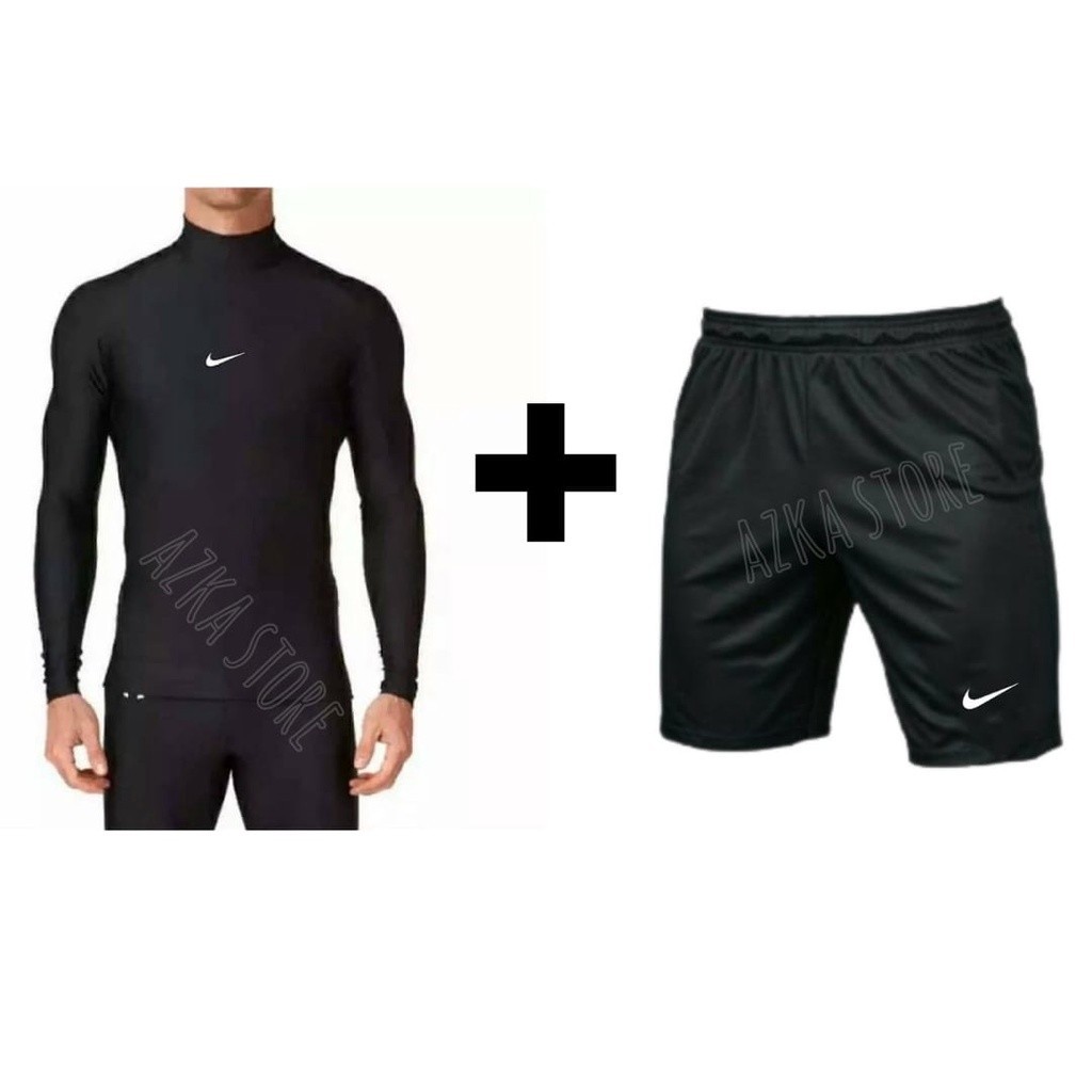 Stelan Pakaian Olahraga Baselayer Dapat Manset Baselayer, Celana Pendek Dan Legging Panjang