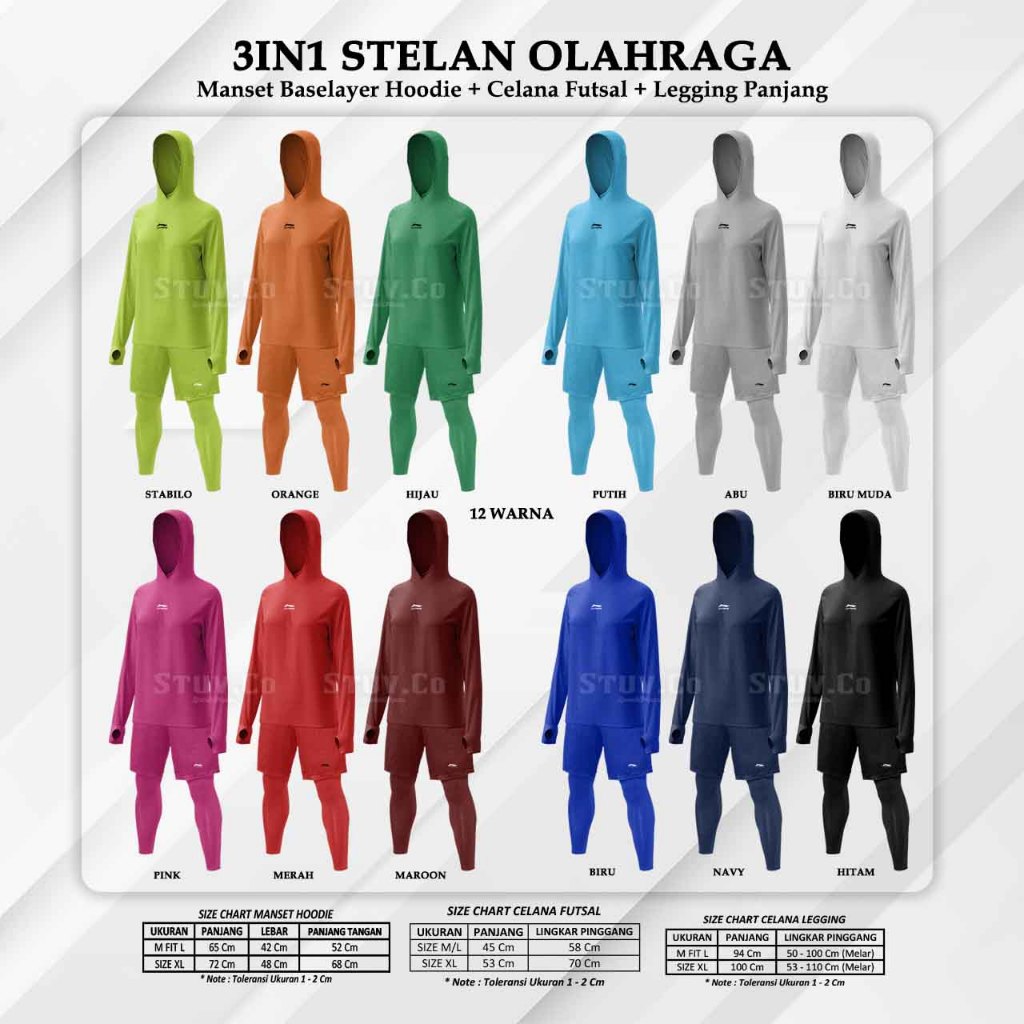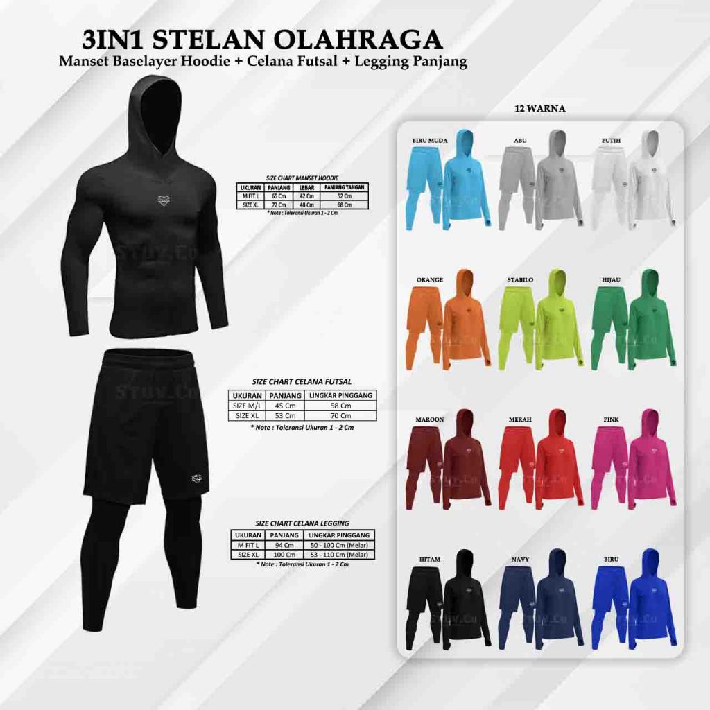 3IN1 PROMO PAKAIAN OLAHRAGA MANSET PRIA HOODIE BASELAYER PANJANG LEGGING PANJANG DAN CELANA PENDEK