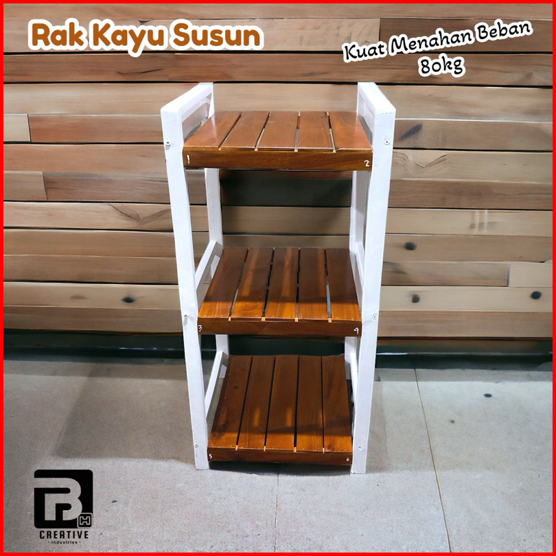 Warna Kombinasi Rak Galon 3 Tingkat Meja Dispenser Galon Rak Rice Cooker Rak Kayu Susun Serbaguna